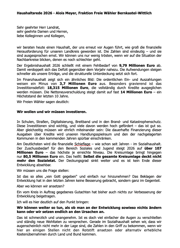 Rede zum Haushalt 2026 – Alois Meyer Sylvia 12 Jan. 2026 Comment 0 zur vollständigen Ansicht bitte anklicken Allgemein facebook.com twitter.com linkedin.com Beitragsnavigation Previuos: Previuos post: Antrag auf Einführung eines DorfticketsNext: Next post: Kreisparteitag